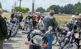 With the main event being a picnic lunch at twelve the plan was to meet 10:30 at the new clubrooms. The Bunnythorpe Community Centre has recently been opened and the committee has made the decision to shift from the Vintage Car Club rooms on Kelvin Grove Road. Whilst we didn't get to go inside the building everything was sparkling new. Should prove to be a great venue. The carpark quickly filled up with a range of modern's and classic's and after Road Captain John called everyone in, he outlined our route for the morning. The carpark was soon reverberating to the sound of Enfield's, Vincents, Harley's, Triumphs, Ducati's, Matchless, BMW's, Kawasaki's, Guzzi's, and a Can Am!